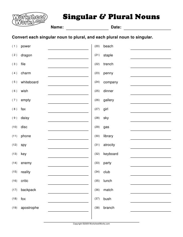 Plural noun worksheet