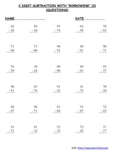 Subtraction With Borrowing Worksheets. This set of printable subtraction worksheets for kids includes lots of two digit subtraction problems with borrowing. Displaying all worksheets related to - Subtraction Of Fraction With Borrowing.