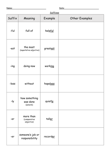 Suffixes follow the modified root word. Look at the examples and tables in this article and practice with these prefixes and suffixes worksheets. Let your students loose on this crossword and/or wordsearch where the answers are all words that include prefixes.