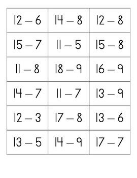 Subtraction Flash Cards - Math Facts 0-12 Flashcards ...