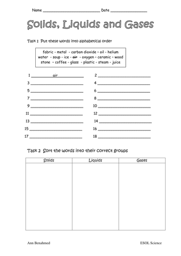Gases Liquids and Solids Worksheet - gases liquids and ...