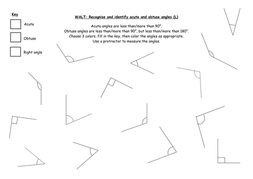 Get the GreatSchools newsletter - our best articles, worksheets and more delivered weekly. Challenge your third grader to identify acute, right, and obtuse angles with this geometry worksheet. Use browser document reader options to download and/or print.